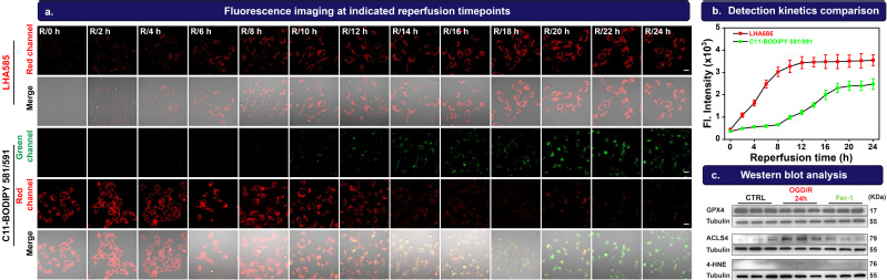 图2:LHA585和金标准探针对OGD/R细胞模型中铁死亡的检测能力比较。